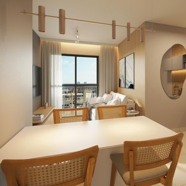 A planta foi pensada para otimizar cada metro quadrado, garantindo integração e boa circulação entre os espaços. A sala proporciona um ambiente aconchegante para estar e jantar, com ótima ventilação natural. A suíte oferece privacidade e comodidade, enquanto o segundo quarto pode ser adaptado para dormitório ou espaço multiuso, atendendo às diferentes necessidades da rotina moderna.