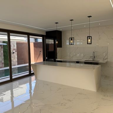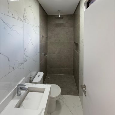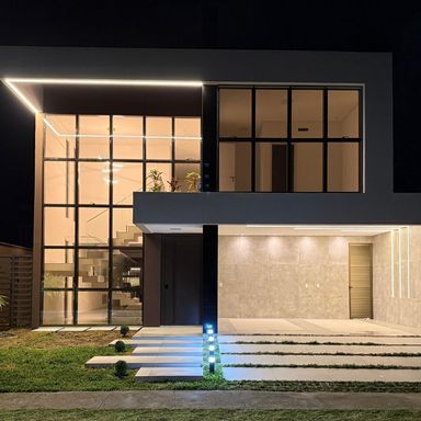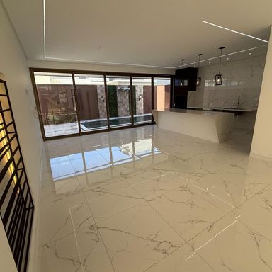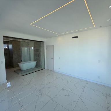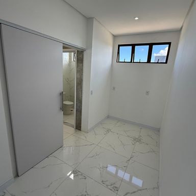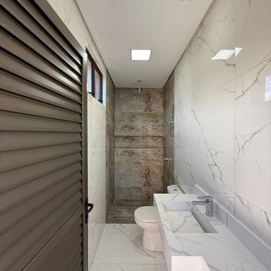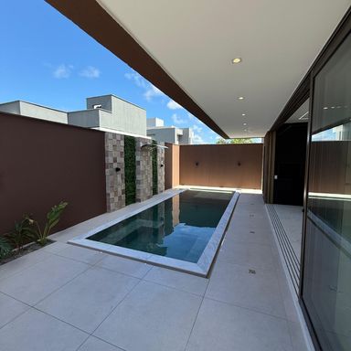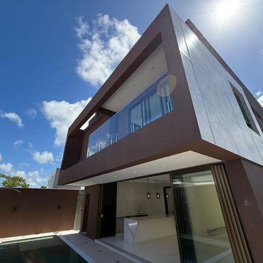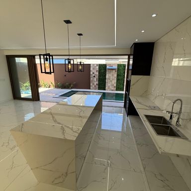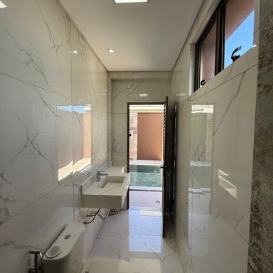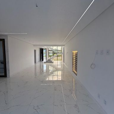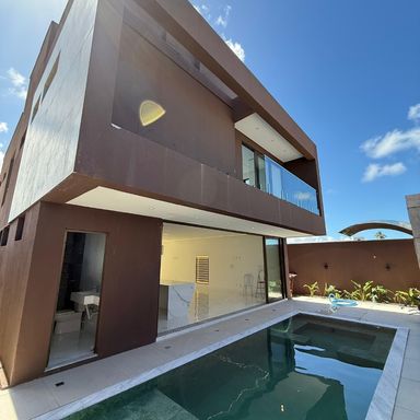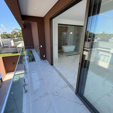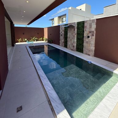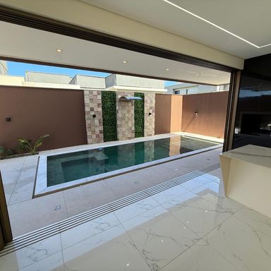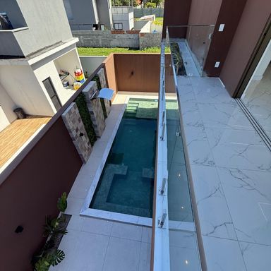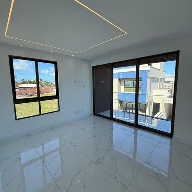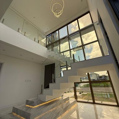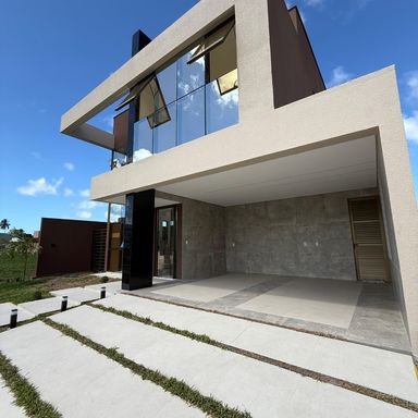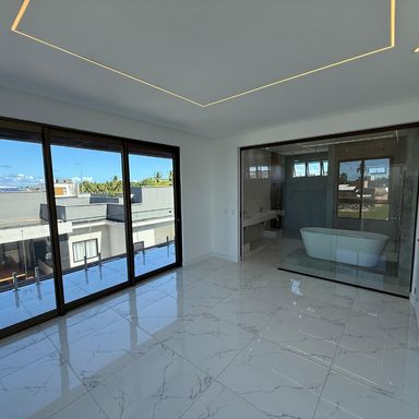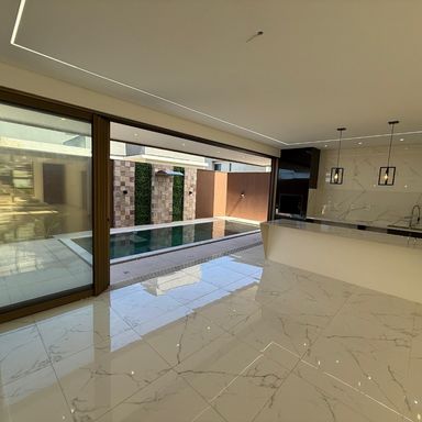 No térreo, ambientes integrados unem sala de estar e jantar, cozinha moderna, despensa e área de serviço. O espaço gourmet, com ilha para 5 lugares e churrasqueira, conecta-se à piscina com prainha e hidromassagem um convite irresistível para momentos de lazer e relaxamento. No andar superior, três amplas suítes com closet garantem conforto e privacidade. E um dos quartos possui uma suíte máster, um verdadeiro refúgio: varanda privativa, sala de banho com pia dupla, chuveiro duplo, banheira de imersão e um closet espaçoso, pensado para o máximo conforto.