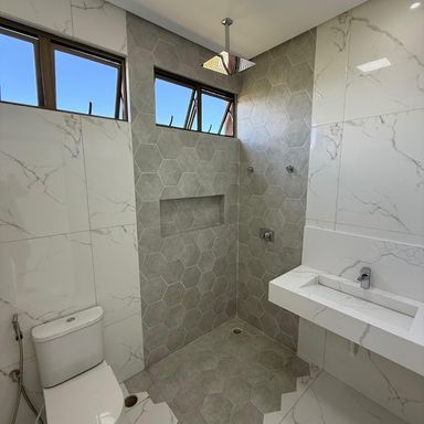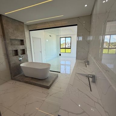 O sistema hidráulico é pressurizado, proporcionando conforto semelhante ao de hotéis cinco estrelas. Conta com aquecimento de água em todos os banheiros, cozinha e chuveirão da piscina. Os acabamentos seguem o mais alto padrão: pias e bancadas em nanoglass Calacata ultracompact e metais monocomando Docol. Aqui, cada amanhecer vem acompanhado pela brisa leve da lagoa e pela tranquilidade de um ambiente projetado para o bem-estar.